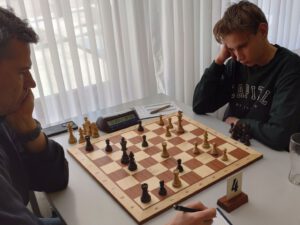 Die 1. Mannschaft erreichte in der Bezirksoberliga ein 4:4 gegen MTV Eintracht Celle I. Da die Gäste nur mit sechs Spielern antraten, lagen wir zu Beginn automatisch mit 2:0 in Führung. Die übrigen Partien waren hart umkämpft. An Brett 2 wurde ein Figurenopfer nach bekanntem Muster versucht, das sich als nicht korrekt erwies; der Celler stand zunächst materiell vorteilhaft, doch durch aktive Verteidigung und konsequentes Spiel drehten wir die Partie und gewannen. Kurz darauf gelang auch an Brett 4 ein Punktgewinn. An den übrigen Brettern lagen wir teils positionell, teils materiell im Nachteil, und die Gegner verwerteten ihre Chancen. Bernhard Weidner und Luis Baum gewannen kampflos; Richard Bürgener und Andreas Kozik holten volle Punkte am Brett. In der Tabelle rutschte die 1. Mannschaft von Platz 2 auf Platz 3.